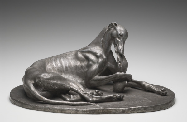 Anna Hyatt Huntington is best known for her large-scale equestrian sculptures, but she also created many smaller pieces, often of domestic animals. These were given a personal, and often whimsical, quality. Here, the delightful Echo playfully chews on a shoe.