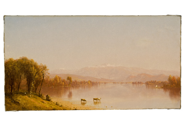 Sanford Gifford was part of the second generation of landscape painters who followed in the footsteps of Thomas Cole. He and his peers, such as Frederic Church and Albert Bierstadt, were quick to capitalize on the popular demand for paintings that depicted America’s natural splendor. Gifford became one of the foremost figures in a group that has come to be known as the “Luminists”: artists who favored panoramic horizontal formats and who sought to capture the effects of light and atmosphere that were unique to the places that they chose to paint. Recently, a long debate about the authorship of this painting was settled when conservation work uncovered Gifford’s signature below that of his peer, Jasper Francis Cropsey. The finding confirmed the suspicions of an expert on Gifford’s work, who had identified a preparatory sketch by the artist for The Mint Museum’s painting and had made compelling arguments that the style of the painting was much closer to Gifford’s than to Cropsey’s. Cropsey’s signature was probably added to this painting sometime between his death in 1900 and the 1930s, when it likely entered into the collection of the family that ultimately donated it to the Museum: a period during which Cropsey appears to have been held in higher regard than his colleague Gifford.