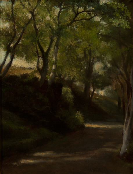 Although best known today for his groundbreaking work in stained glass, John La Farge was also a talented and innovative painter. After training briefly in Paris with Thomas Couture, La Farge returned to America to study with William Morris Hunt, who was among the first Americans to embrace and promote the new techniques being developed by the Barbizon School and the Impressionists in France. "In the Glen" was one of the first paintings that La Farge completed after his return to the United States in 1858. In this small but beautiful composition, one can see that La Farge was beginning to apply what he was learning from Hunt about working directly and spontaneously from the local landscape and that, like his peers in Europe, he was exploring new ways to capture the effects of light and atmosphere in his work.