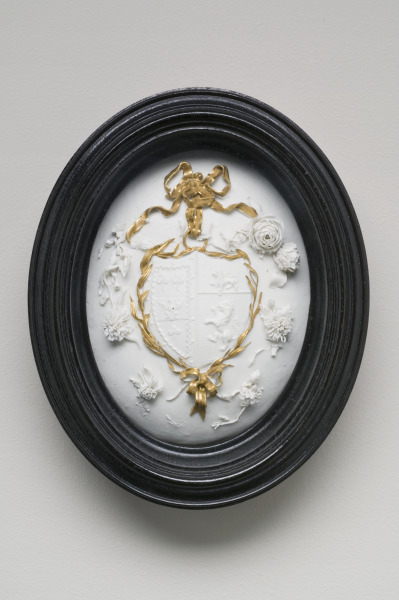 This plaque is molded with the arms of Champion impaling Lloyd, signifying those of Richard Champion (1743–1791), proprietor of the Bristol porcelain factory, and his wife, Judith Lloyd Champion (1741– 1790).