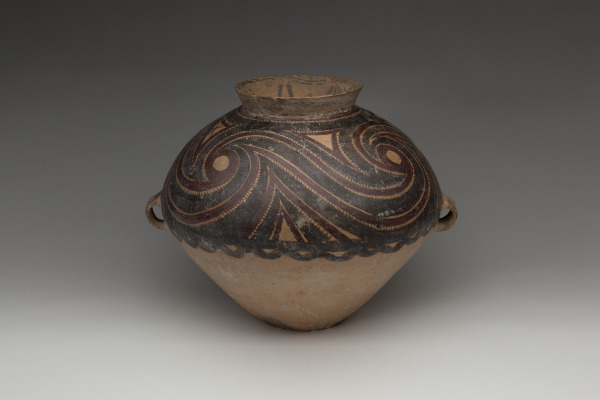 The painted decoration of this storage jar is characteristic of ceramics produced during the Gansu Yangshao culture, which flourished in northwest China. It is assumed that painted ceramics were used either as ritual objects or to show the high status of their owners.