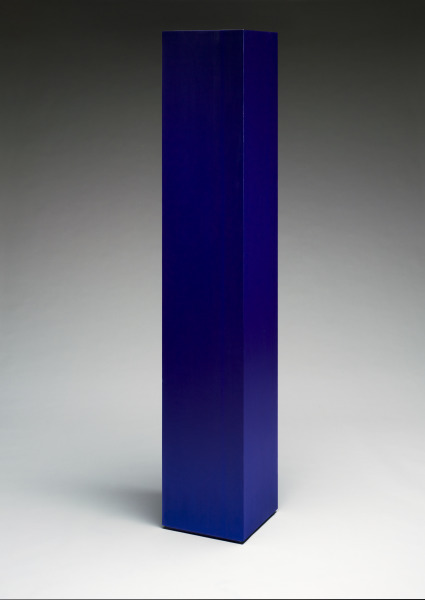 By emphasizing the way in which color and light interact with simple three-dimensional forms, Anne Truitt explored some of the same ideas as artists knowns as the Minimalists. However, she resisted being placed within this movement, as she favored traditional methods over industrial techniques. Truitt’s sculptures are combinations of painting and sculpture that remind her of imagery from her childhood: trees, fences, houses, and walls. As a child, her eyesight was so poor that, until corrected with glasses, she did not realize that trees had individual leaves. This early experience may be understood as an influence on her sculptures that are characterized as masses of shape and color, but with no identifying markers. Truitt wanted to see color three-dimensionally and thoroughly investigated its potential within the sculptural medium, stating: “I want you to feel that you’re responding to the presence of color set free, as it were, into three dimensions, unattached to an object.” The use of a recessed base creates a distance from the floor which makes the sculpture appear as if it is floating in space, defying gravity. This allows the sculpture to be interpreted as an embodiment of form and color rather than understanding the sculpture as merely an object.