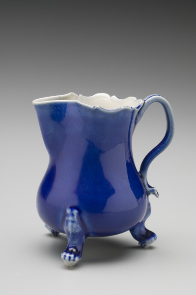 This jug is coated with a cobalt-blue glaze known to modern collectors as “Littler’s Blue” or “Littler-Wedgwood Blue.” It was purportedly developed by William Littler (1724–1784) and his brother-in-law, Aaron Wedgwood (circa 1718–1782). Unfortunately, no evidence has yet confirmed the date of their invention, or that Littler and Wedgwood were indeed business partners.