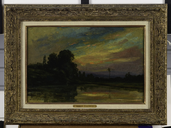 Closely associated with the Barbizon School artists, Daubigny began his career painting landscapes in the Forest of Fontainebleau. His love of water scenes led him to capture numerous sites along the rivers of France. In 1857 he launched his "Botin," the studio boat that fostered the development of his plein-air (open air) technique, enabling him to paint while traveling the French waterways.