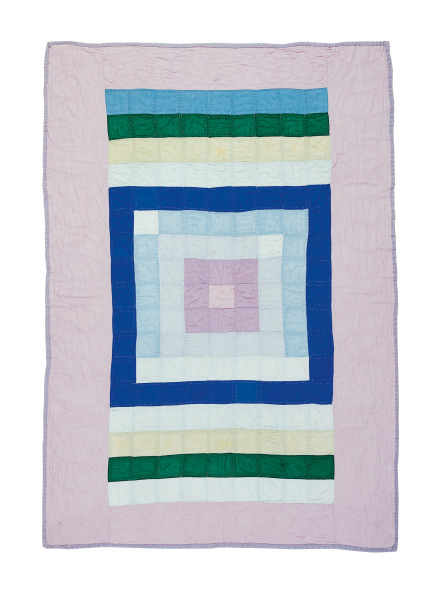 In the late 1930s and early 1940s, wool was increasingly difficult to obtain. Instead of wool, Midwest Amish quilters used cotton, rayon, and various mixtures of crepe fabric. This crib quilt represents a distinct departure from the classic medallion style by using a lighter palette of colors and fabrics and an unconventional design.