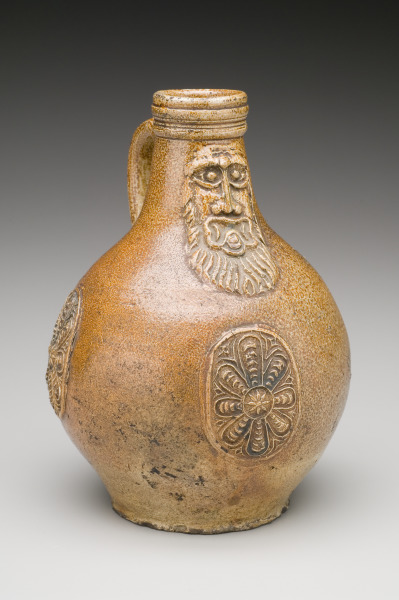 These jugs are also called "Graybeards", from the bearded image embossed on the neck.