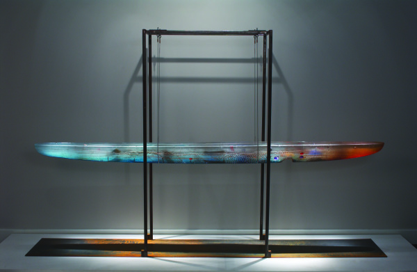 Bertil Vallien is recognized as the pioneer of the sand-casting technique, in which molten glass is poured into a firm sand mold. Much like the cire perdue or lost wax technique, the delicate nature of the mold material prevents more than one sculpture from being produced. Thus, Vallien's sand-cast sculptures are unique works of art. One of the most prominent vessel themes in his stoneware sculptures of the late 1970's, the boat became a hallmark of Vallien's later sand-cast sculptures (1984-88). Vallien's boats are containers for messages and metaphors for man's existence. They explore universal themes, like the journey of life and the unknown destination.