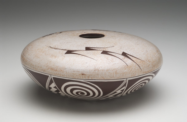 The motifs of maize plant, lizard, spirals and zigzags may be a petition for successful planting, an appropriate narrative for a seed collecting and storage jar.
