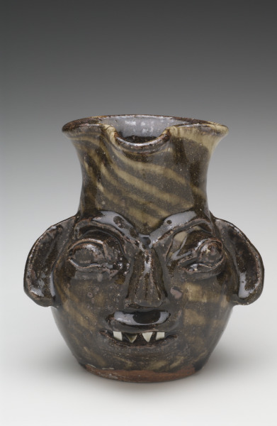 Burlon Craig is considered the last of the traditionally trained potters working in the ash-glaze technique of the Catawba Valley. He began learning his craft when he was fourteen from Jim Lynn, a seasoned potter. When Burlon returned to North Carolina after fighting in World War II, he purchased Harvey Reinhardt’s groundhog kiln and pottery shop. He made a full range of items, both utilitarian and decorative. Burlon was especially known for his face jugs, which he began producing in the 1970s in response to demand from his customers, and for sharing his knowledge so readily with younger potters.