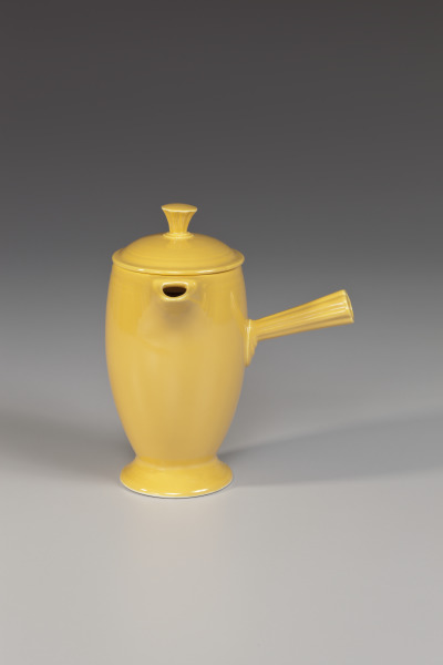 A native of Staffordshire, England, Frederick Hurten Rhead (1880–1942) followed six generations of potters in his family and became the art director of a local pottery before he was twenty years old. In 1902, he immigrated to the United States, where he proceeded to work as designer or art director for a series of firms, including S. A. Weller Pottery and Roseville Pottery, both located in Zanesville, Ohio; University City Pottery near St. Louis, Missouri; Arequipa Pottery in Marin County, California, and others. From 1927 to his death, he was art director of the Homer Laughlin China Company in Newark, West Virginia, where he reached a career zenith, designing the perennially popular Fiesta pattern. Fiesta Ware was one of the most successful dinnerware patterns of the twentieth century. Rhead was the first to stress the notion of "mix-and-match", and he used vivid colors found in contemporary automobiles and household accoutrements. The Fiesta line was discontinued in 1973 but it was reintroduced in different colors in 1986 to celebrate the fiftieth year of its design.(this paragraph was written by Dr. Barbara S. Perry.)