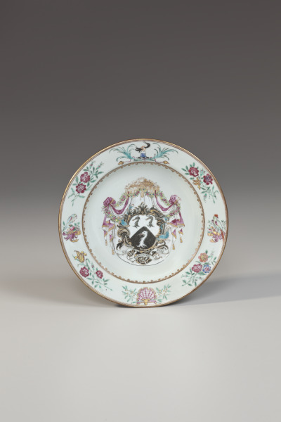 This soup plate features the arms of Michel of Kingston Russell, Dorset, and is part of a sumptuous service made probably for David Robert Michel (circa 1735–1805), a member of the British Parliament.