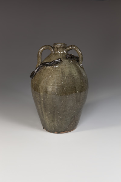 Burlon Craig is considered the last of the traditionally trained potters working in the ash-glaze technique of the Catawba Valley. He began learning his craft when he was fourteen from Jim Lynn, a seasoned potter. When Burlon returned to North Carolina after fighting in World War II, he purchased Harvey Reinhardt’s groundhog kiln and pottery shop. He made a full range of items, both utilitarian and decorative. Burlon was especially known for his face jugs, which he began producing in the 1970s in response to demand from his customers, and for sharing his knowledge so readily with younger potters.