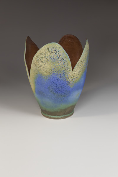Born in Tokyo, Japan, Hiroshi Sueyoshi moved to Asheboro in 1971 to help design and build Humble Mill Pottery. Today he is the master artist in residence at the Cameron Art Museum in Wilmington. He used silicon carbide (carborundum) to create the richly textured surface on this vessel.