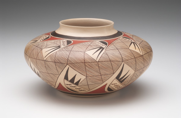 Tonita Hamilton Nampeyo employs classical Hopi-Tewa pottery methods and designs. Yet, she also continues her famous family’s long-standing spirit of artistic experimentation and innovation.