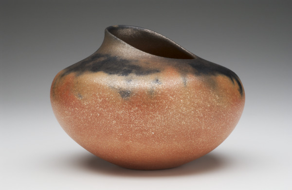 The asymmetical neck and fire-clouded shoulder recall the blown-out cone of a volcano surrounded by pumice and ash, reflecting the New Mexican landscape.