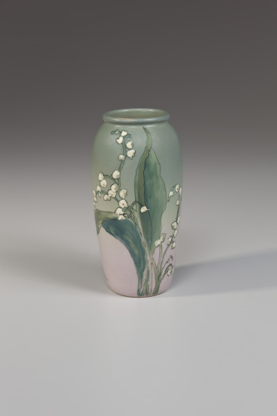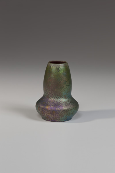 The rich and lustrous surface of this vase is typical of the work of the French decorator Jacques Sicard, who worked for Weller Pottery from 1902 until 1907, when he returned to his native France. Sicard, who was trained by the French ceramist Clement Massier at Golf Juan, created iridescent surfaces on ceramic vessels in deep jewel tones using a method known only to himself and his assistant. Sicard worked in secrecy at Weller, and took his secrets with him when he returned to France. This prompted Weller to devise its own luster glaze, which it marketed successfully under the name of LaSa ware. LaSa does, indeed, have a luster surface but does not approach the richness and complexity of the surfaces of Sicard ware. Sicard usually used motifs from nature in his decoration: stars, insects, and most frequently, lovely blossoms, all of which are completely overshadowed by the beauty of the colors and sheen of the lustrous surfaces.