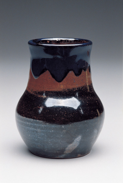 Born in Wisconsin, Oscar Bachelder left home at seventeen to travel across the country as an itinerant potter. He finally settled in the small mountain town of Luther, near Asheville in 1911. He bought some land with clay deposits and started Omar Khayyam Pottery. Bachelder was one of the first North Carolina potters to make the transition from utilitarian to art wares. Many of his wares have deceptively simple shapes and subtle shadings of colors. The creative use of the glazes here confirms Bachelder's commitment to experimentation and his fascination with the artistic aspects of pottery making.