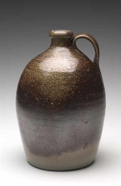 The Craven family is one of the most notable North Carolina potting dynasties, beginning with Peter Craven (circa 1712–1791), who moved to North Carolina around 1745. Fifth-generation Craven potter Jacob Dorris Craven was one of the most prolific potters in North Carolina, producing as much as 6,000 gallons of jugs, crocks, and pitchers a year. He partnered frequently with his brother Thomas Wesley, as manifested by this jug marked “J.D. & T.W. CRAVEN”. Two of Jacob’s sons also became potters. Little work survives from Thomas, since he lived only to the age of twenty-nine.
