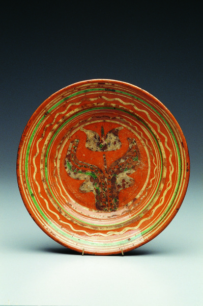 wheel-thrown earthenware incised colored slip