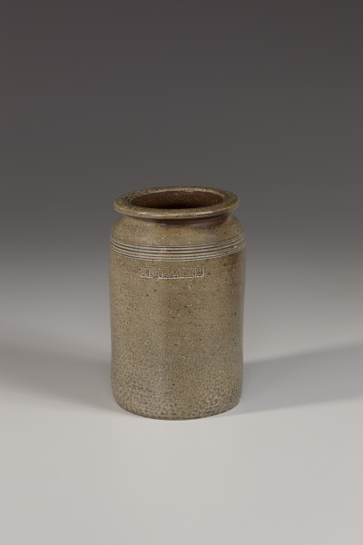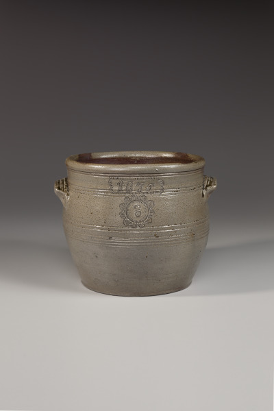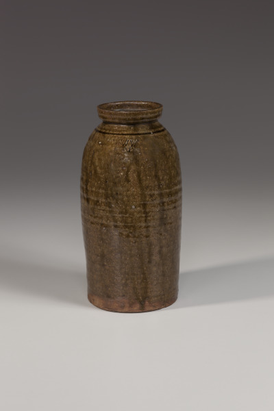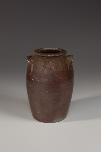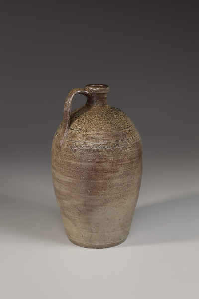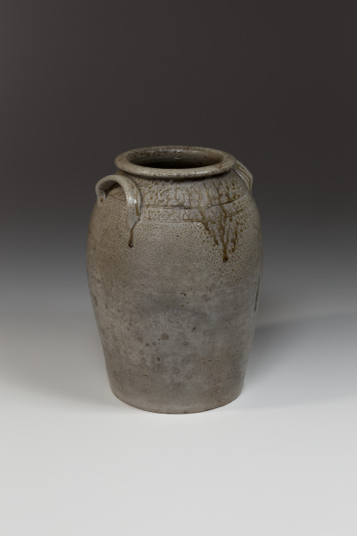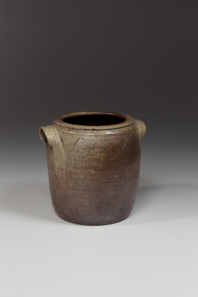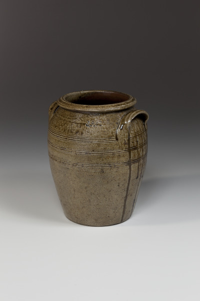 The Craven family is one of the most notable North Carolina potting dynasties, beginning with Peter Craven (circa 1712–1791), who moved to North Carolina around 1745. John Anderson Craven and his three brothers, William Nicholas, Jacob Dorris, and Thomas Wesley, learned how to pot from their father, the Reverend Anderson Craven (1801–1872). John Anderson worked in partnership with his father throughout his life, while his brothers left home to start their own pottery workshops once they reached adulthood. Note the three bands of incised lines that decorate this jar. John Anderson and his brothers often employed this decorative motif, which they borrowed from the Fox family, another North Carolina dynasty of potters and one to whom they were related by marriage.