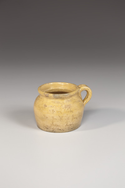 Through the ages, potters have sometimes been compelled to use their vessels to convey politically inspired, often satirical messages. The inscription on this small pot reads “Jo’han, Jo’han/Jo’han Worth/Run, Run For all Your Worth/Hurrah Hurrah/For Jo’han Worth.” Jonathan Worth was a prominent politician from Randolph County and served as governor of North Carolina from 1865 to 1868.